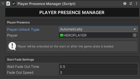 2. In the **GAMEMANAGER**, navigate to **Player Presence Manager** and select **Player Unlock Type** to specify whether you prefer **Automatic** or **Manual** unlocking of the player.