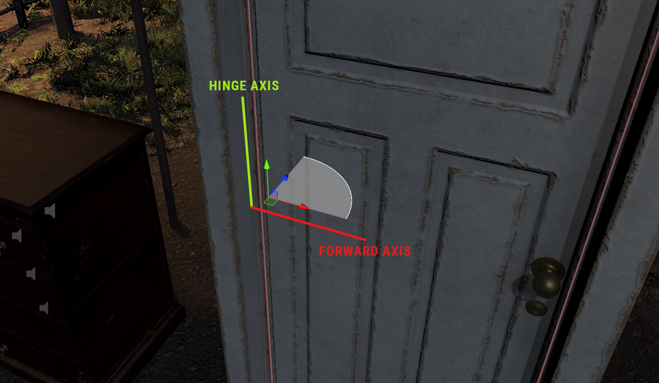 3. Rotate the door back to the closed position. Adjust the **Target Hinge** (the axis where the door pivots) and **Target Forward** (the axis along which the door mesh extends).