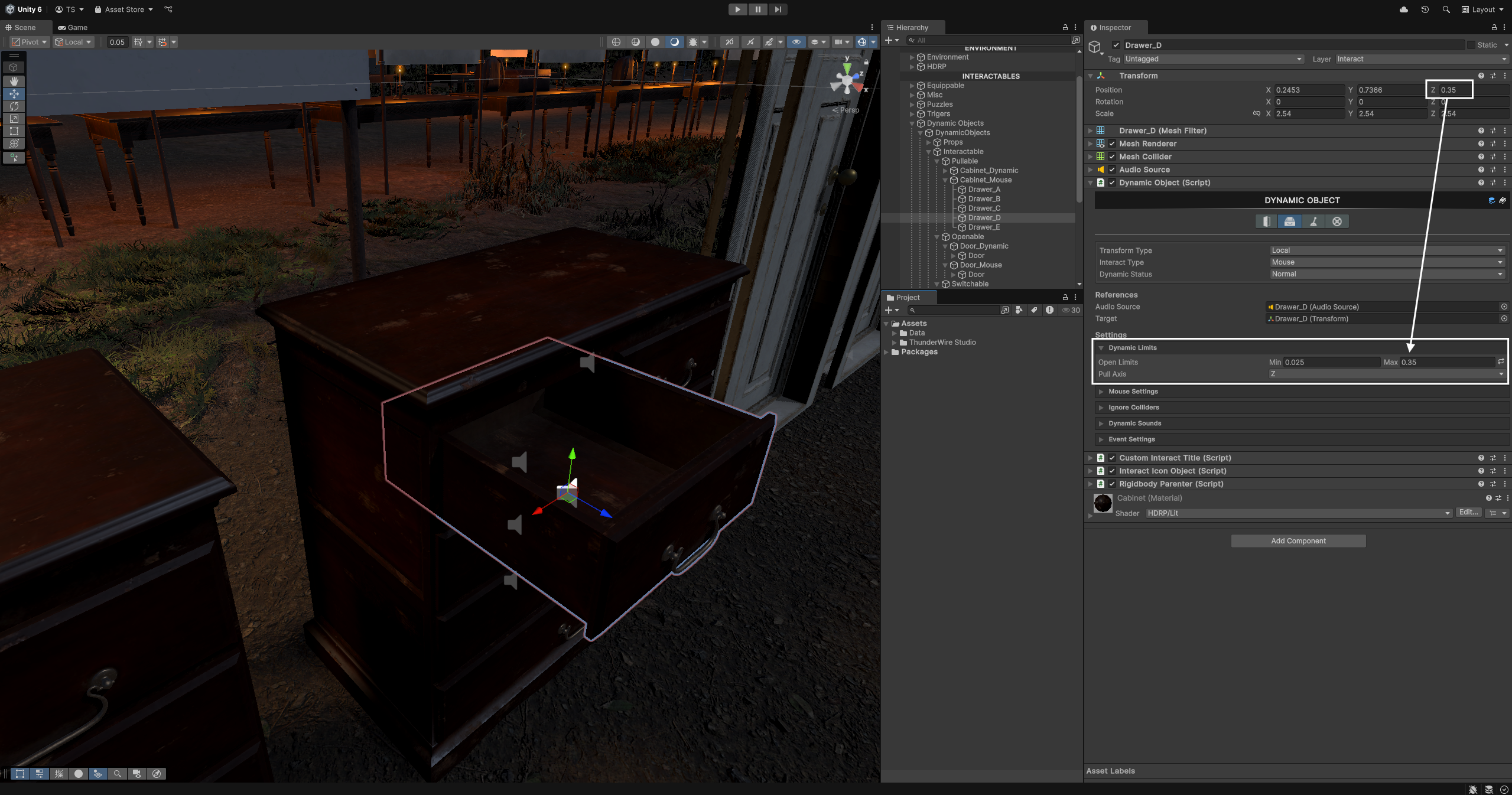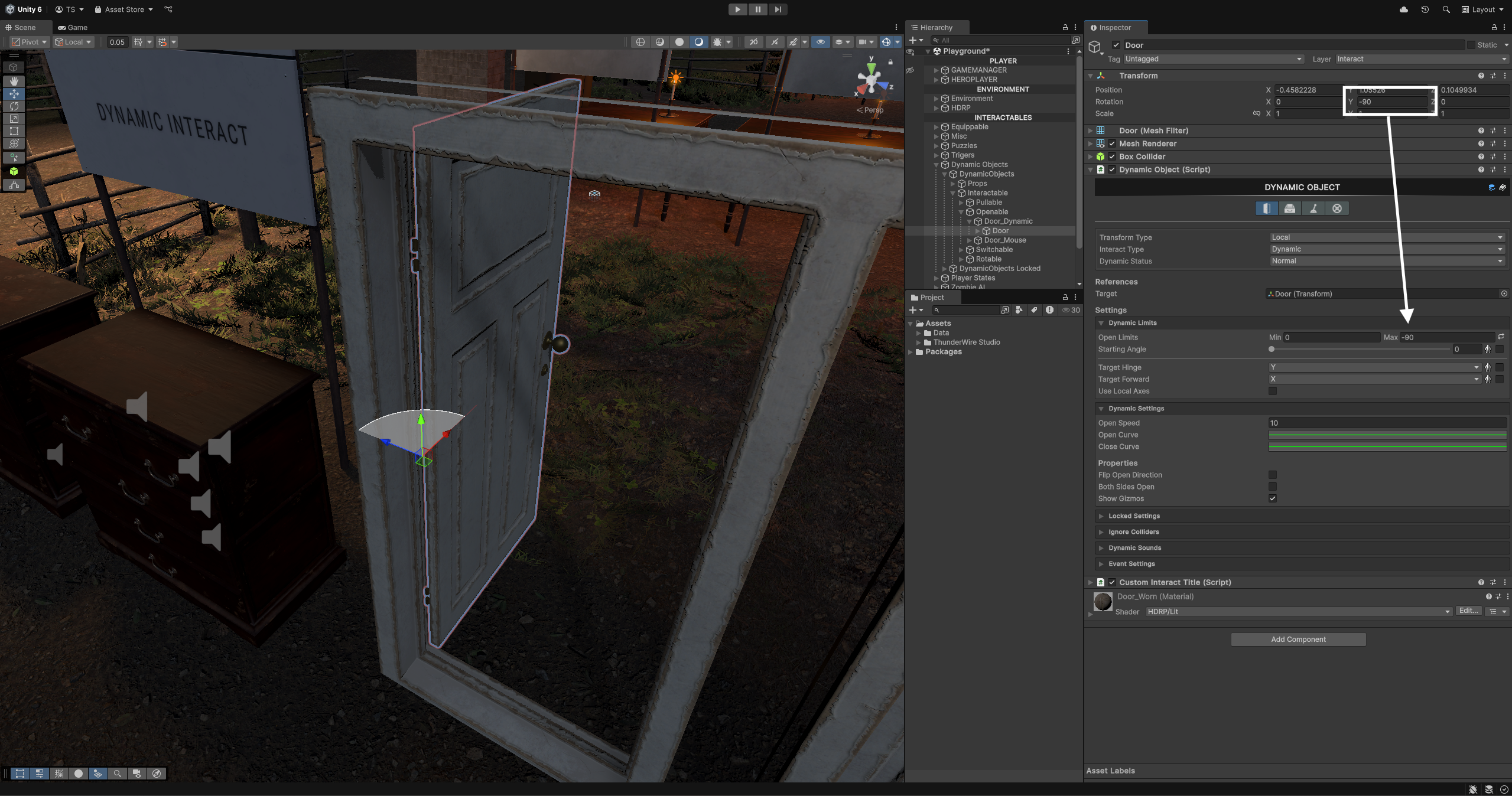 1. To make an object dynamic (such as a door, drawer, lever, or valve), add a **Dynamic Object** component to the object.