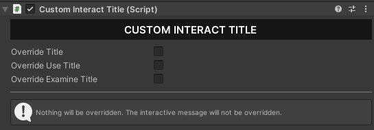 * **`IInteractTitle`** - The title displayed when interacting with the object will be changed based on the parameters used in the **TitleParams**.