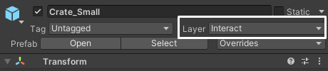 1. To define custom behavior when interacting with an object, first change the object's layer to <mark style="color:red;">**Interact**</mark> to indicate that the object is interactable.