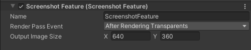 This renderer feature is utilized to capture a game screenshot when you save the game. It's important to call it **After Rendering Transparents** or **Before Rendering Post Processing** to ensure the resulting image provides a clear view of the game, free of any effects.